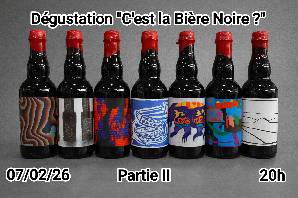 Pour cette soirée, c'est dégustation de bières noires uniquement, alliant saveurs torréfiées, cacaotées, vanillées... Principalement des nouveautés à découvrir ensemble. 8 bières en dégustation, 8 bières de différents styles de bières noires : Stout, impérial Stout, Baltic Porter.... Des bières costaudes, avec pour certaines des vieillissement plus ou moins long dans des Barriques d'alcool fort tel que le whisky, le bourbon, le rhum, le cognac, l'armagnac , ..
