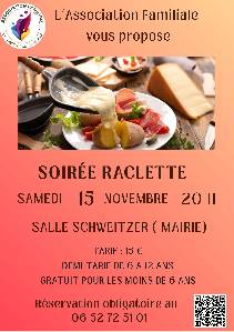 Tarifs : 15 euros (raclette + un verre de vin ou un soft)