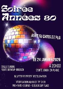 Samedi 24 janvier, c'est Soirée Années 80 à Sainte-Croix-En-Plaine.